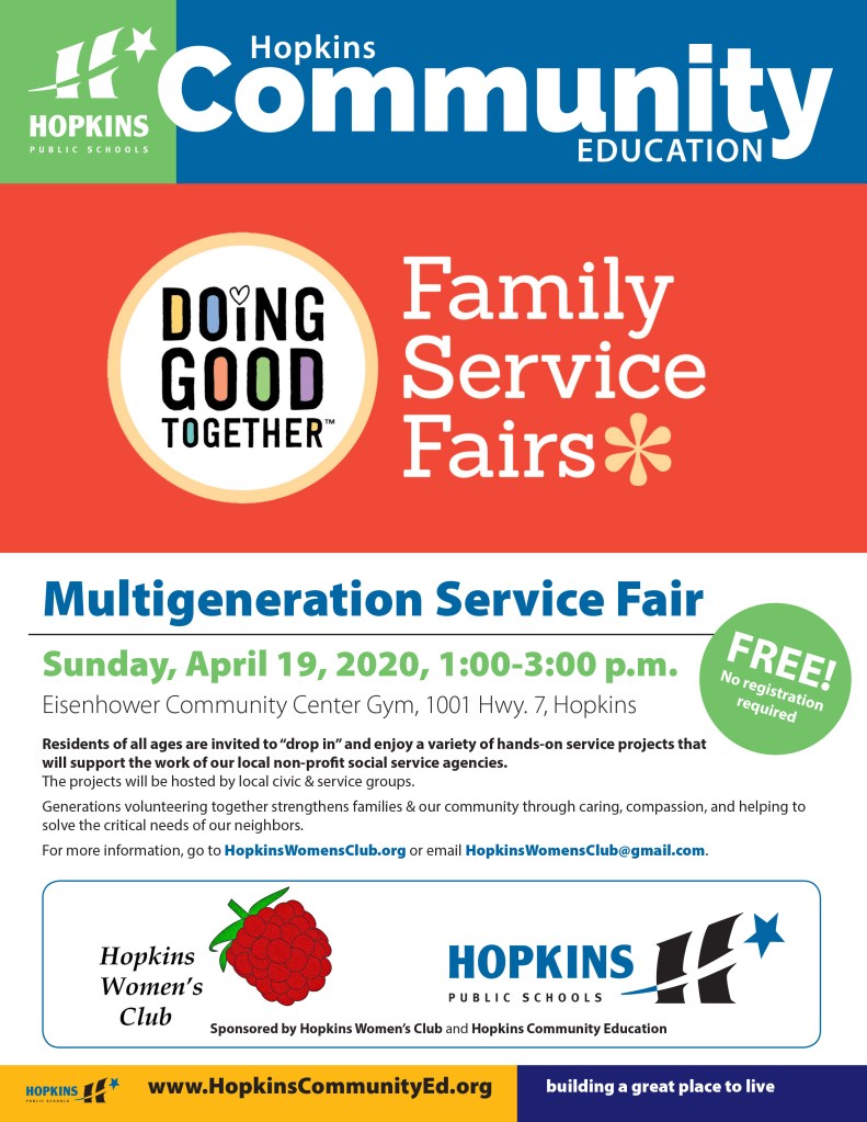 Information tables will be hosted by Doing Good Together and Hopkins Area Athletic Gear Swap.